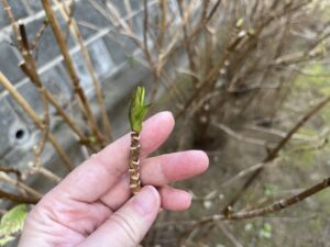丸坊主だったアジサイに新しい葉が出てきました! アジサイ花言葉:移り気・辛抱強さ・家族団らん