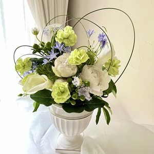 今日は白のシャクヤクを使ってアレンジメントを作りました。つぼみから開花させるのは大変ですがとても良い香りがします。 white and green arrangement with paeony 芍薬の花言葉:幸せな結婚