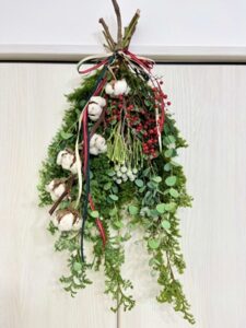 今日は皆さんでクリスマススワッグを作成しました。PreciousAmoでは生徒さんのリクエストにお応えしてレッスンを行うことも多いです!今回のスワッグもそのひとつ。満足されたそうで良かったです!