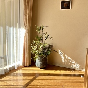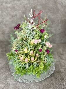 卓上用に切り花とドライフラワーでミニツリーを作りました。ブルーアイスとヒムロスギの香りがリビングいっぱいに広がりました!
