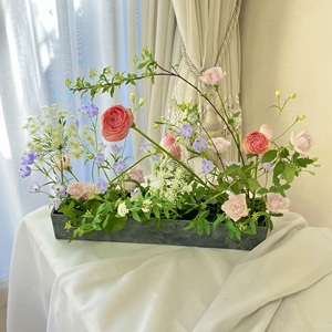 春の花を使ってロマンティックをテーマにアレンジメントを作りました。