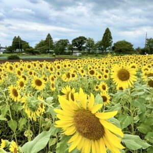 友達夫婦と座間のひまわり畑に行きました!一面のひまわりにみんなで感動。元気になれますねー ひまわりの花言葉:憧れ、あなたを見つめる 大船駅から徒歩1分のお花の教室