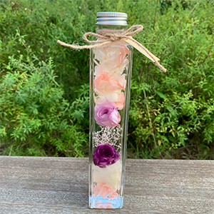 ドライフラワーやプリザーブドフラワーを使って専用オイルに浸けます。お手入れの必要がないのでギフトにも向いています。